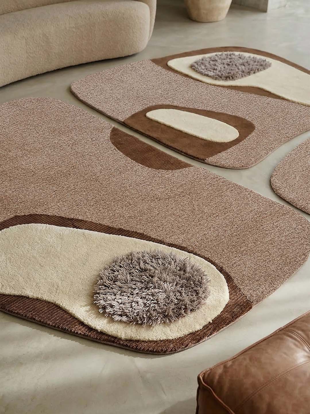 A collection of modular rugs composed of three elements, inspired by the barene of the Venetian lagoon—landscapes suspended between water and land, constantly evolving.