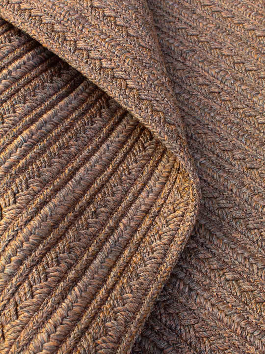 Il modello Pool presenta una trama intrecciata a trecce di diverso spessore che crea pattern unici, realizzato in 100% polipropilene per uso interno ed esterno.