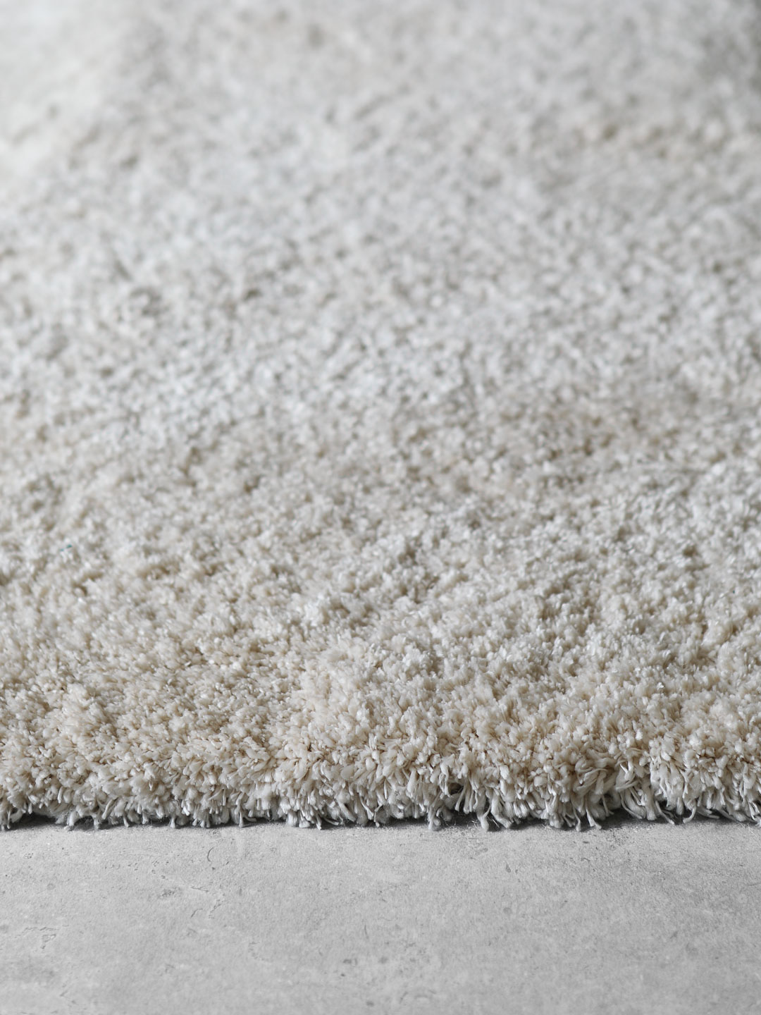 A fur-effect rug, in two delicate colors. Ideal for warming up the space in a comfortable way.