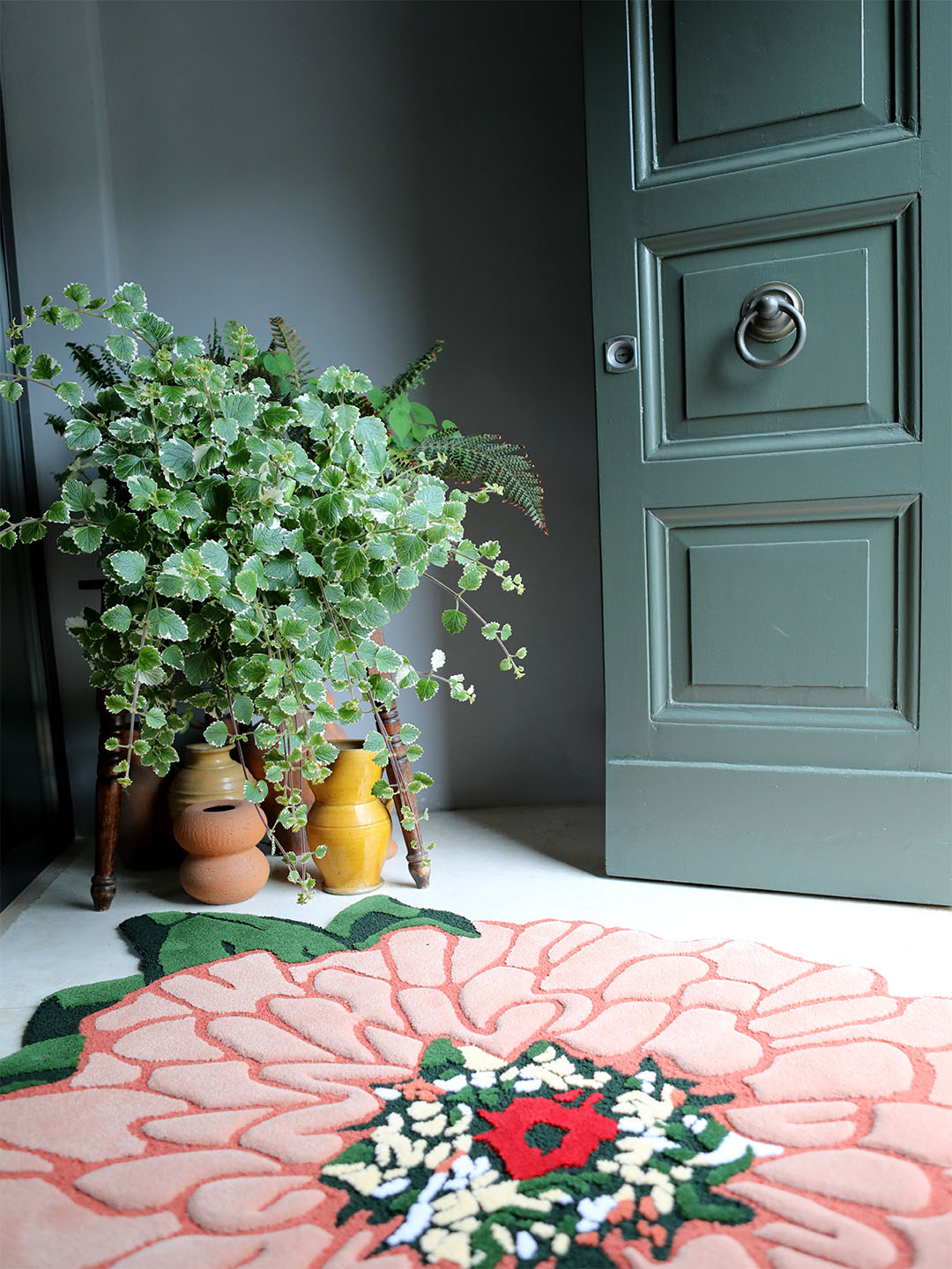 The carpets show the world of Ken Scott, made of colour, irony, spectacular flowers, animals and childish abstract shapes.