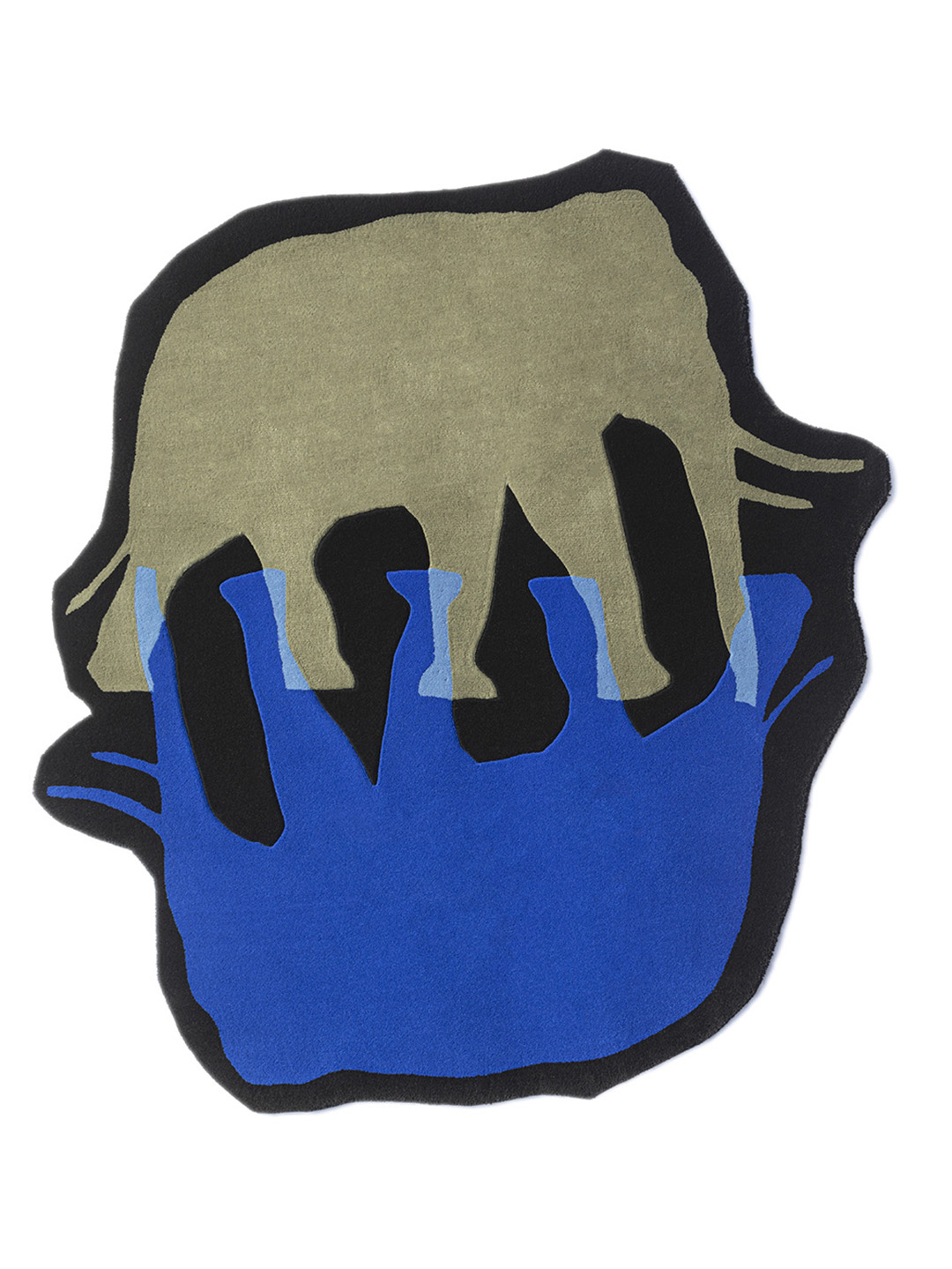 Due silhouette di elefante che contrapposte e in parte sovrapposte creano una geometria astratta dove cogliere la presenza dell’animale non è immediato.