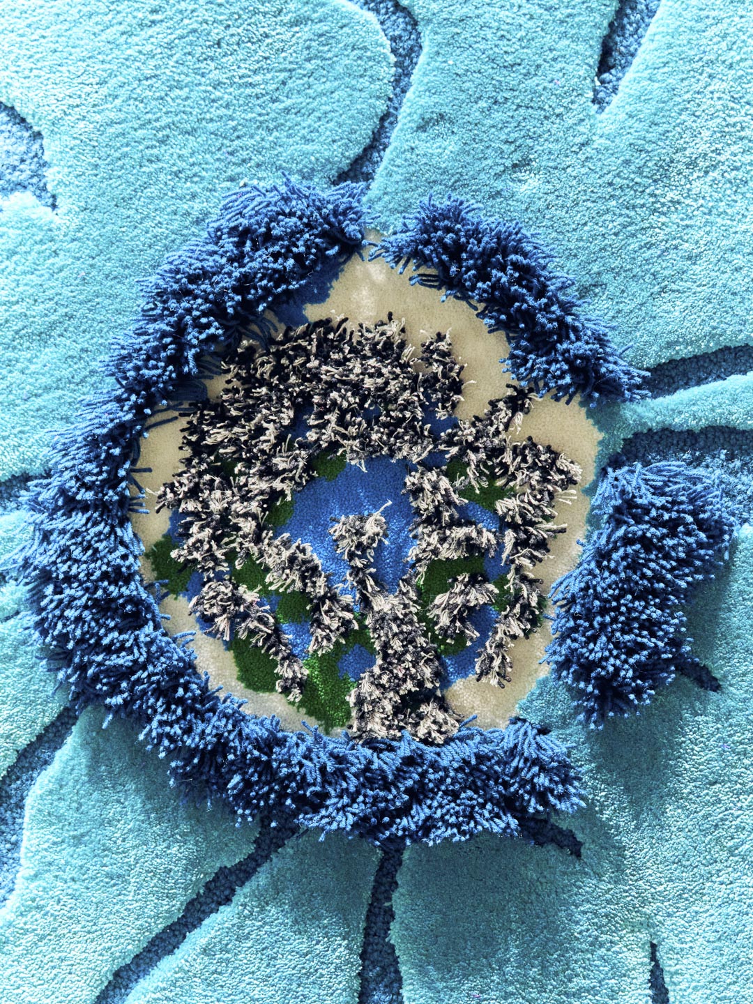 I tappeti raccontano il mondo di Ken Scott, fatto di colore, ironia, fiori spettacolari, animali e fanciullesche forme astratte.