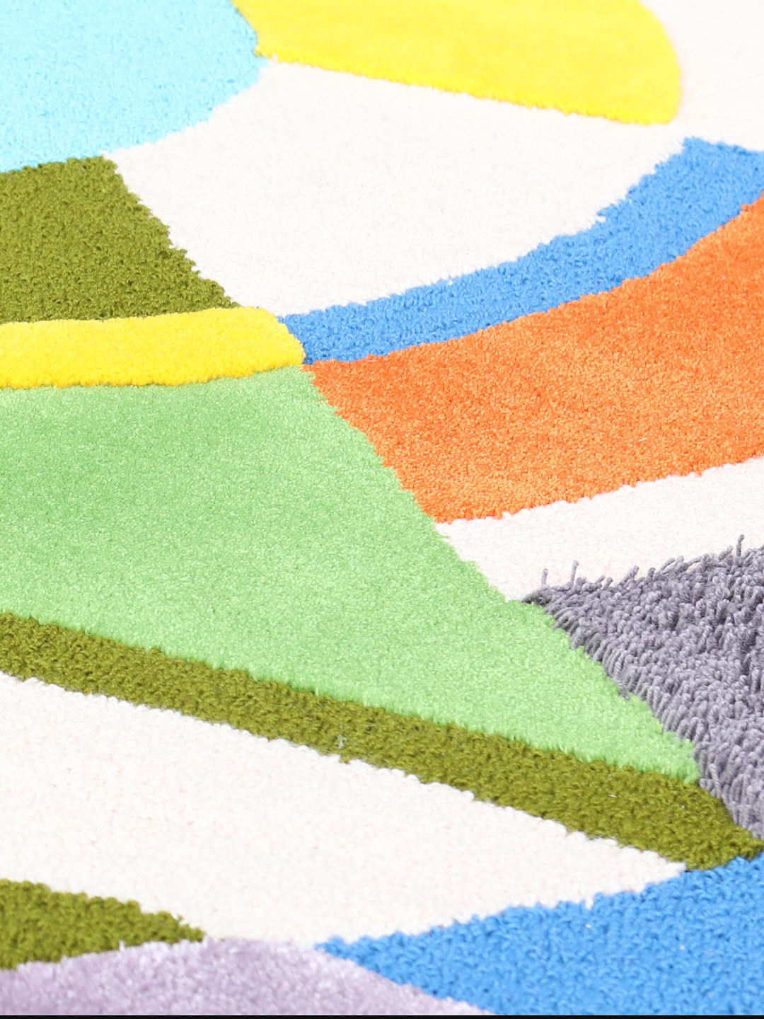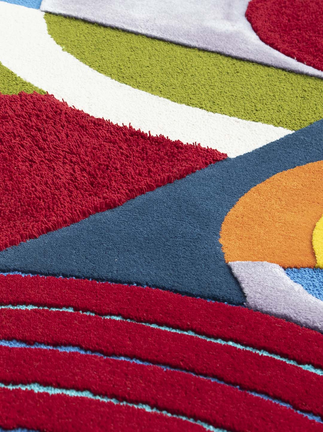 I tappeti raccontano il mondo di Ken Scott, fatto di colore, ironia, fiori spettacolari, animali e fanciullesche forme astratte.