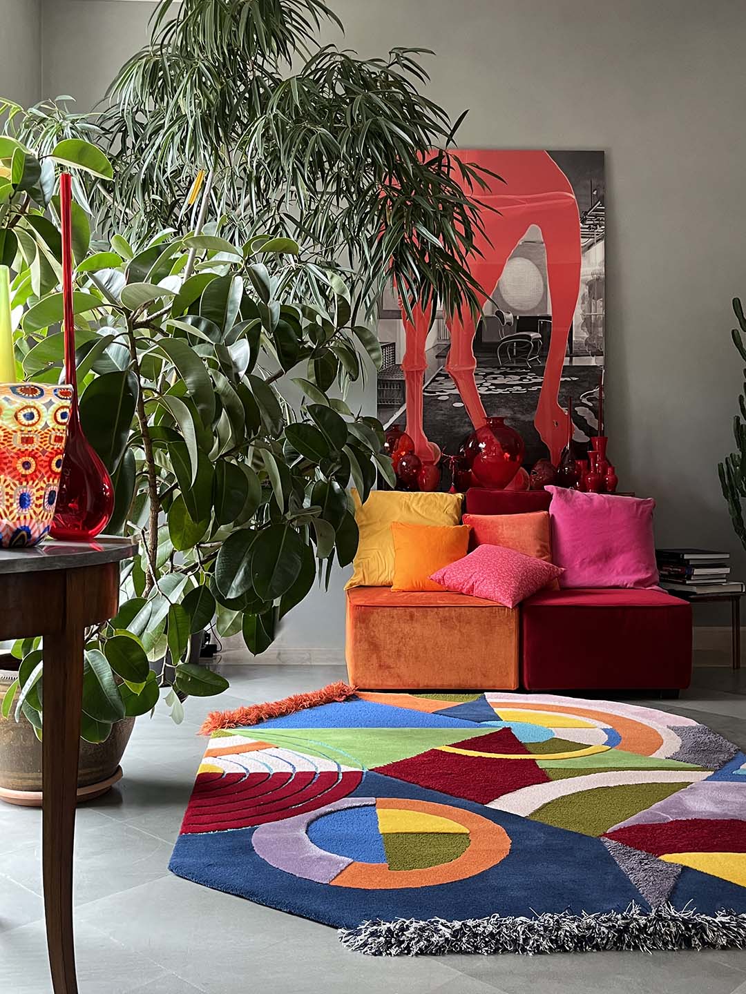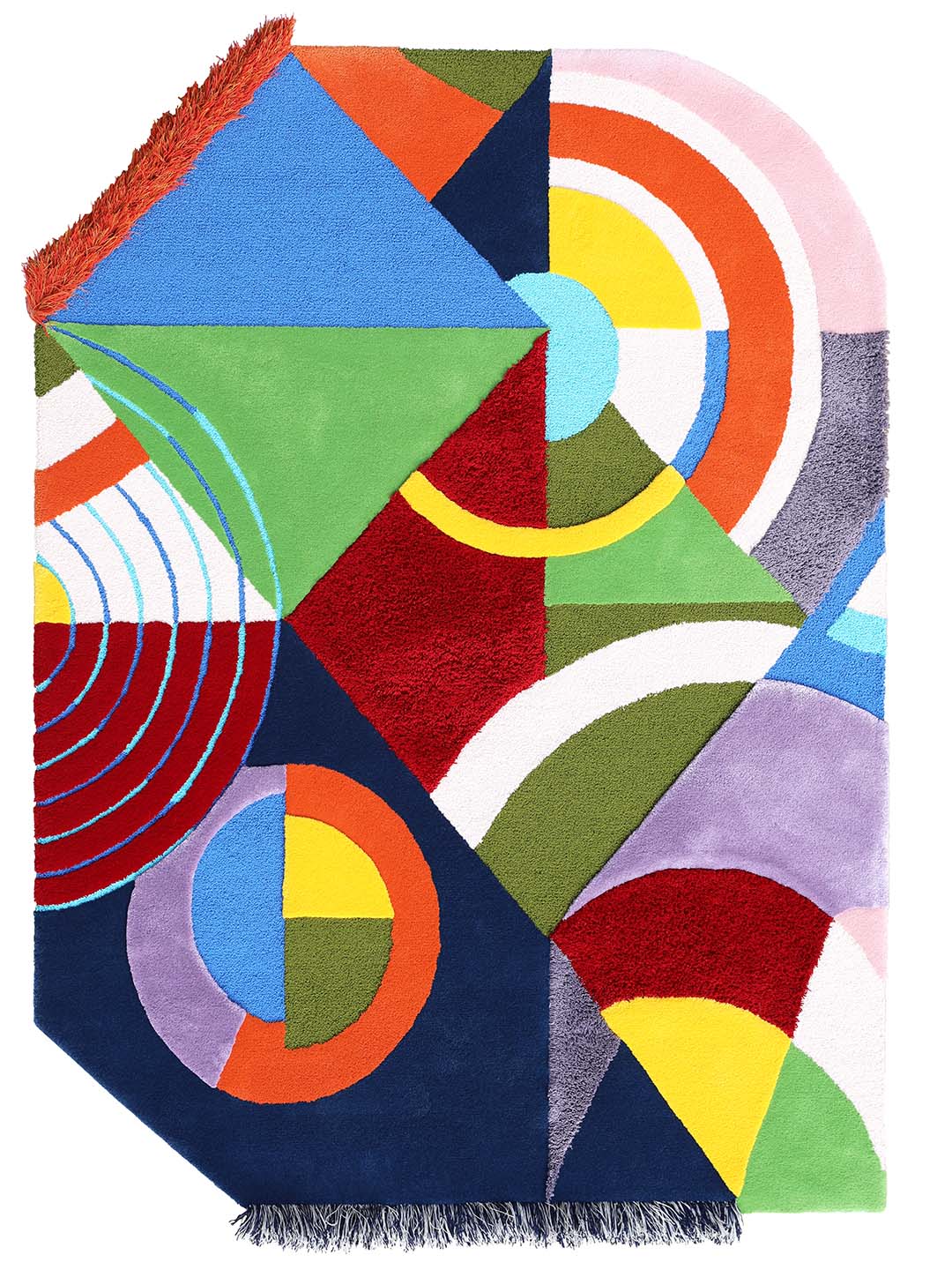 I tappeti raccontano il mondo di Ken Scott, fatto di colore, ironia, fiori spettacolari, animali e fanciullesche forme astratte.