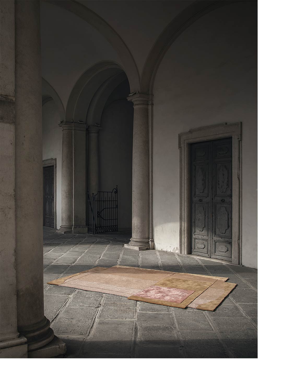 L’osservazione del comportamento della luce in relazione al tempo e allo spazio è il punto di partenza di questa serie, che prende forma in prodotti tessili tangibili e dal forte carattere scultoreo.