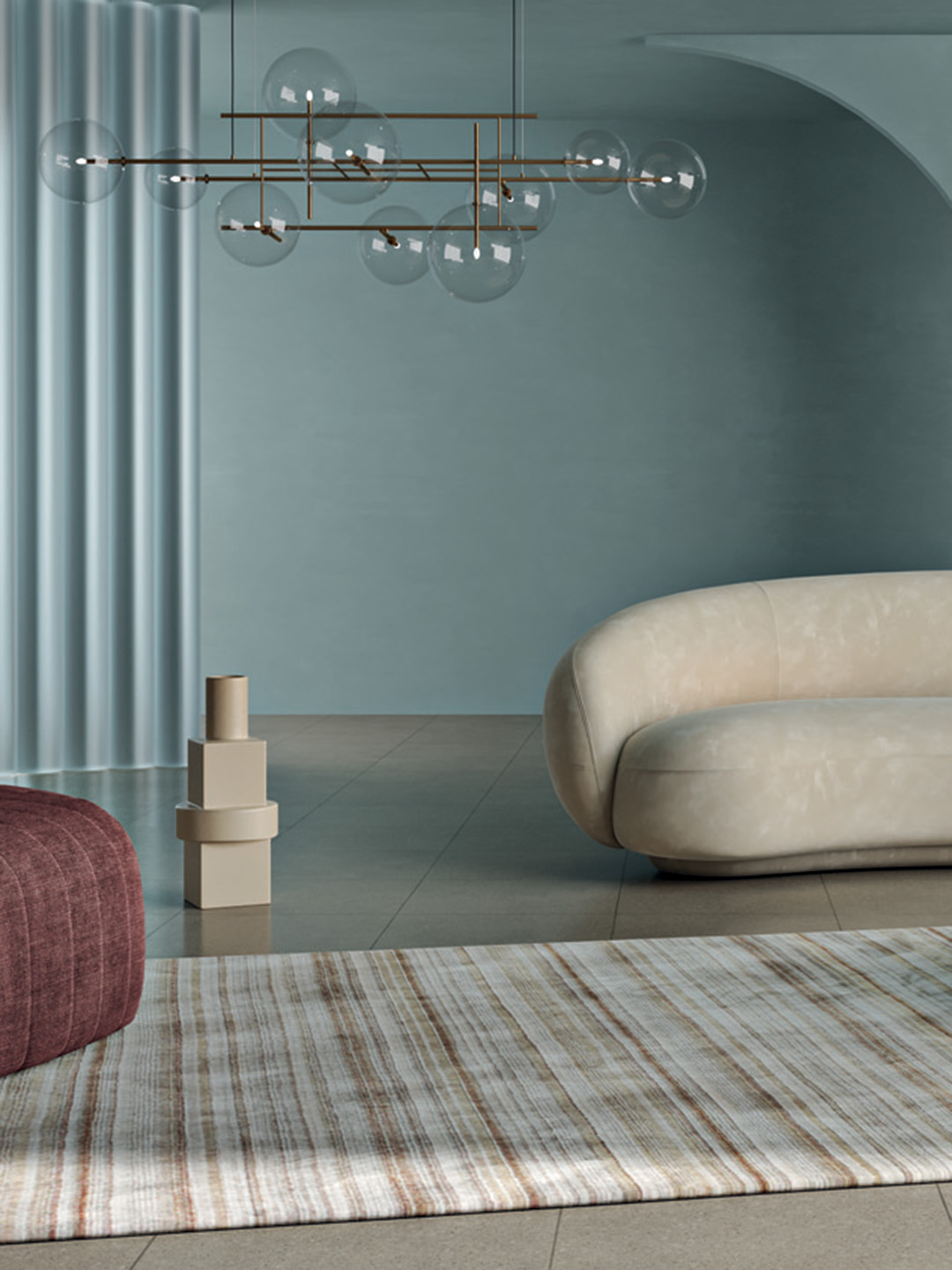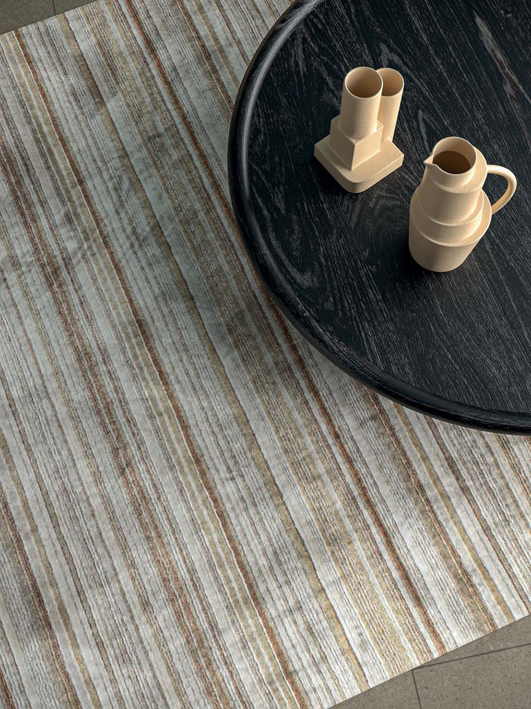 Antica lavorazione che si tramanda di generazione in generazione. Prima di iniziare l’annodatura un artista disegna e colora il motivo in scala 1:1 su una carta millimetrata, dove ogni quadrato rappresenta un nodo. Successivamente gli annodatori, seduti davanti a un telaio verticale, eseguiranno decine di migliaia di nodi: più alto è il numero di nodi, maggiore sarà la qualità del tappeto e la precisione del disegno. Terminata l’annodatura, il tappeto verrà lavato più volte per rimuovere la fibra in eccesso e renderla più lucente e soffice; verrà poi fatto asciugare alla luce del sole. I tempi di queste operazioni, e di conseguenza i tempi di produzione, dipendono spesso da fattori climatici non favorevoli, tipici delle zone monsoniche. La produzione di un tappeto annodato, dalla cardatura fino alla sua fase finale, coinvolge una ventina di persone, ognuna con la propria specializzazione: questo garantisce la creazione di un prodotto di elevata qualità e destinato a durare nel tempo.