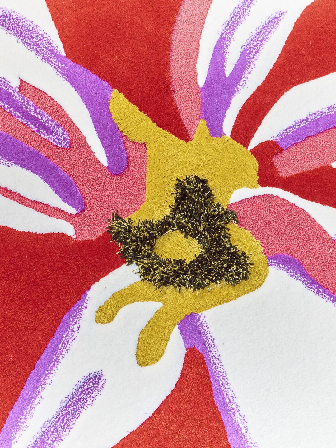 I tappeti raccontano il mondo di Ken Scott, fatto di colore, ironia, fiori spettacolari, animali e fanciullesche forme astratte.
