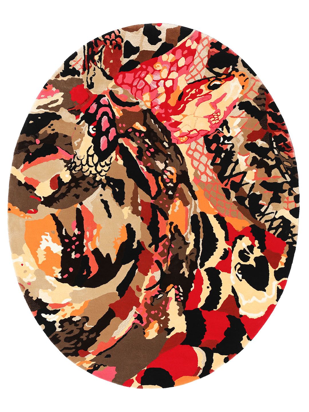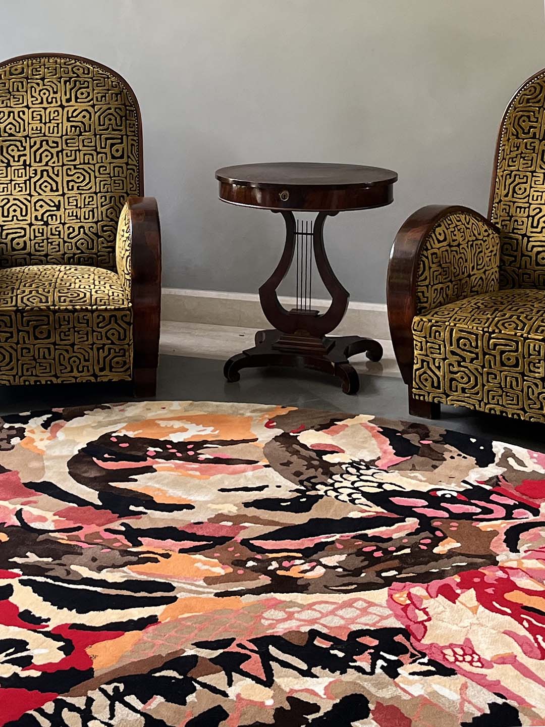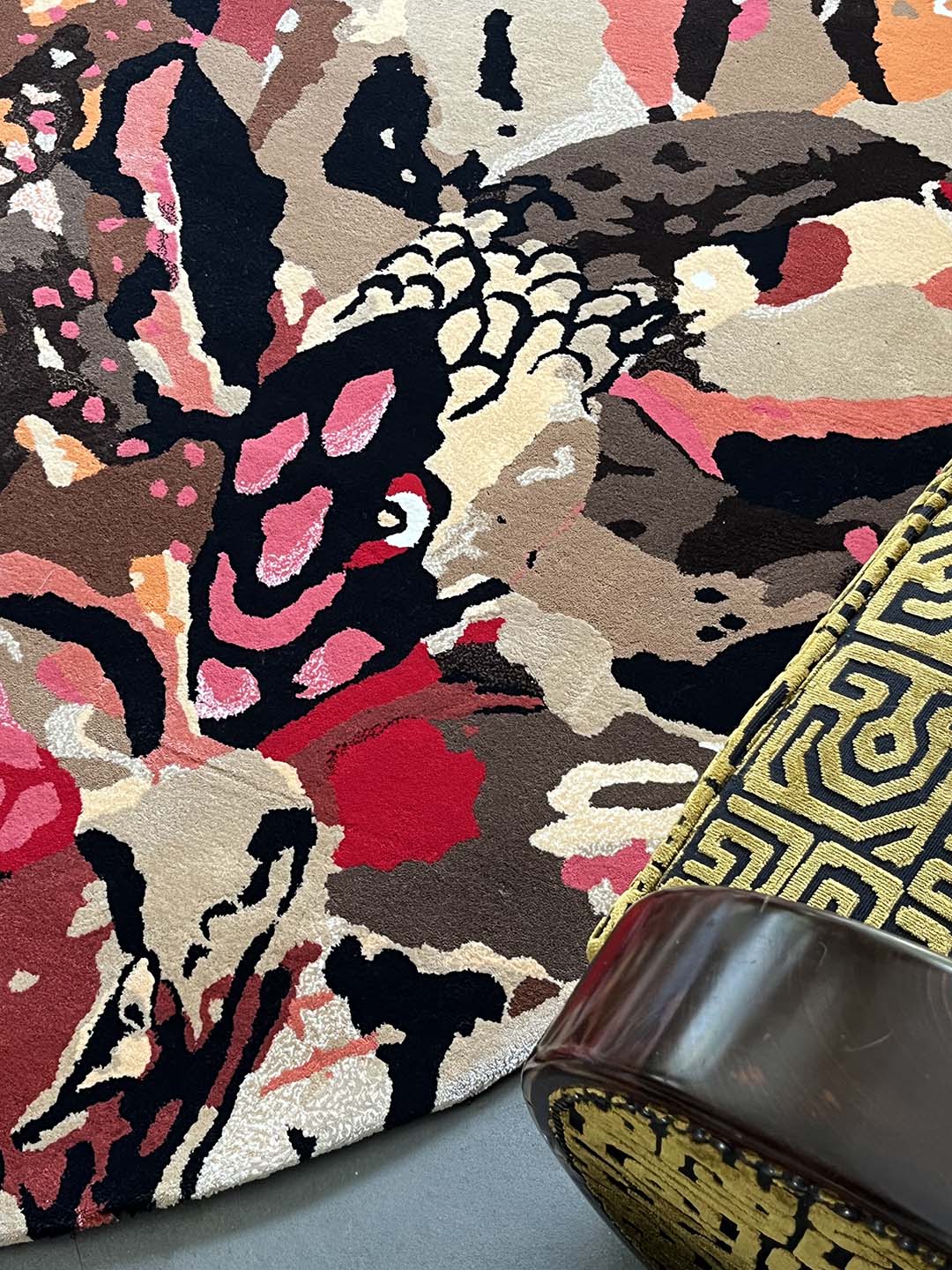 The carpets show the world of Ken Scott, made of colour, irony, spectacular flowers, animals and childish abstract shapes.