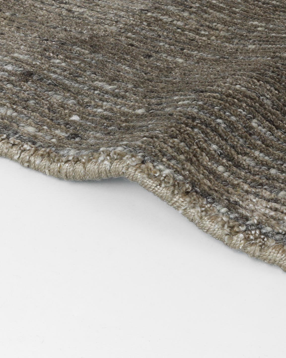In una texture irregolare, la lana melange e bouclè scompone la superficie creando molteplici sfumature e l’accostamento alla seta di bamboo anima il contrasto lucido e opaco.