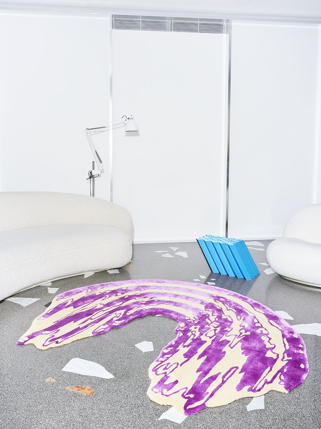 La collezione di tappeti Floor Is Lava di PLACéE è composta da sei opere che ritraggono in chiave bicromatica la deformazione superficiale che si verifica dopo un'esplosione piroclastica.Telai orizzontali o verticali.
