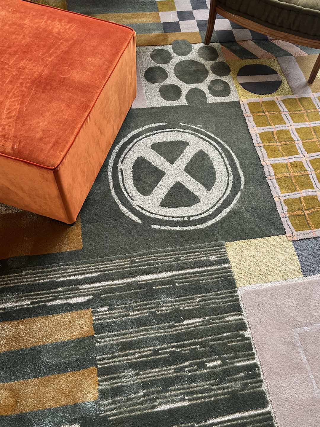 The carpets show the world of Ken Scott, made of colour, irony, spectacular flowers, animals and childish abstract shapes.